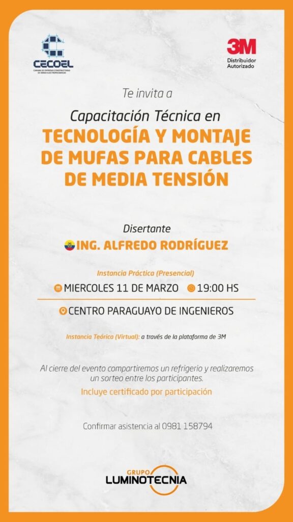 La Cámara de Empresas Constructoras de Obras Electromecánicas (CECOEL), en conjunto con 3M y Grupo Luminotecnia, ha organizado una jornada de capacitación especializada dirigida a profesionales y técnicos del sector eléctrico. El encuentro se centrará en la tecnología y el montaje de mufas para cables de media tensión, un componente crítico para garantizar la integridad y seguridad de las redes de distribución de energía.