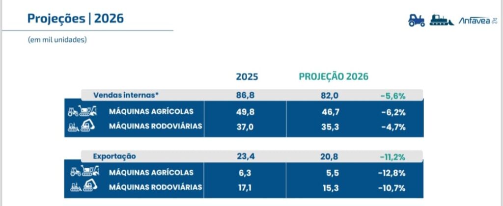 Las proyecciones de Anfavea para el cierre de 2026 mantienen una tendencia a la baja en la demanda de equipos fabricados en Brasil: