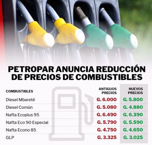 El 1 de diciembre, la petrolera estatal había bajado el precio del diésel común a G. 5.080 el litro, luego de elevar a G. 5.280 desde el mes de octubre.