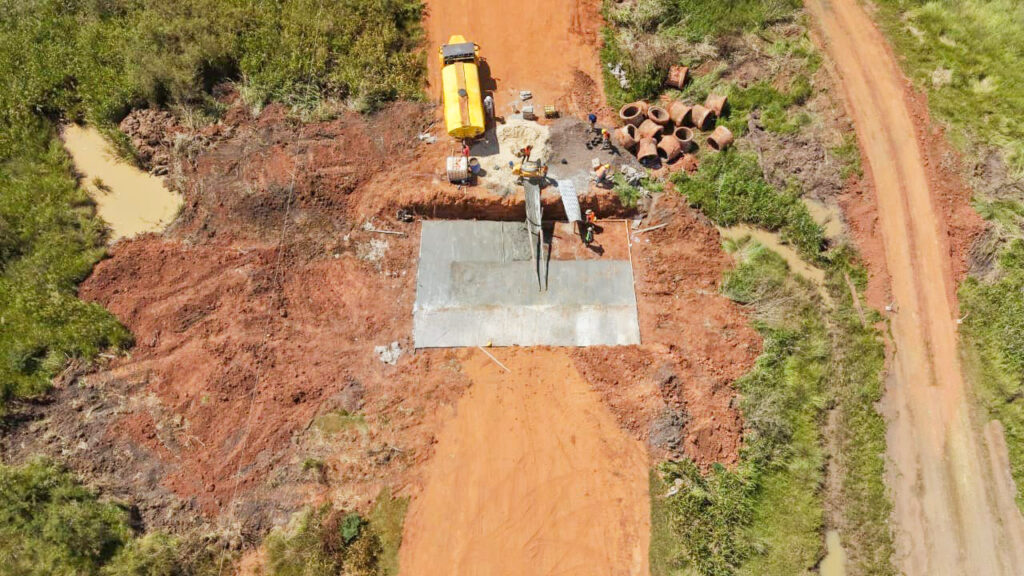 En el terreno, se ejecutan tareas esenciales como el movimiento de suelos y la instalación de alcantarillas de hormigón armado, trabajos que preparan la base de la calzada y garantizan un drenaje eficiente durante todo el año.